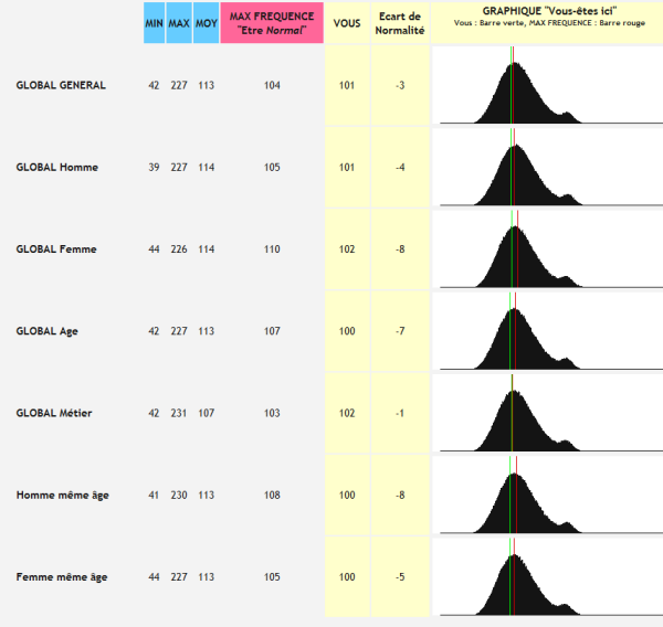 C’est donc un indicateur plutôt pertinent pour répondre non pas à la question « suis-je normal », qui en réalité n’a pas beaucoup de sens, mais à: « Mon degré de complexité est-il ordinaire ? »